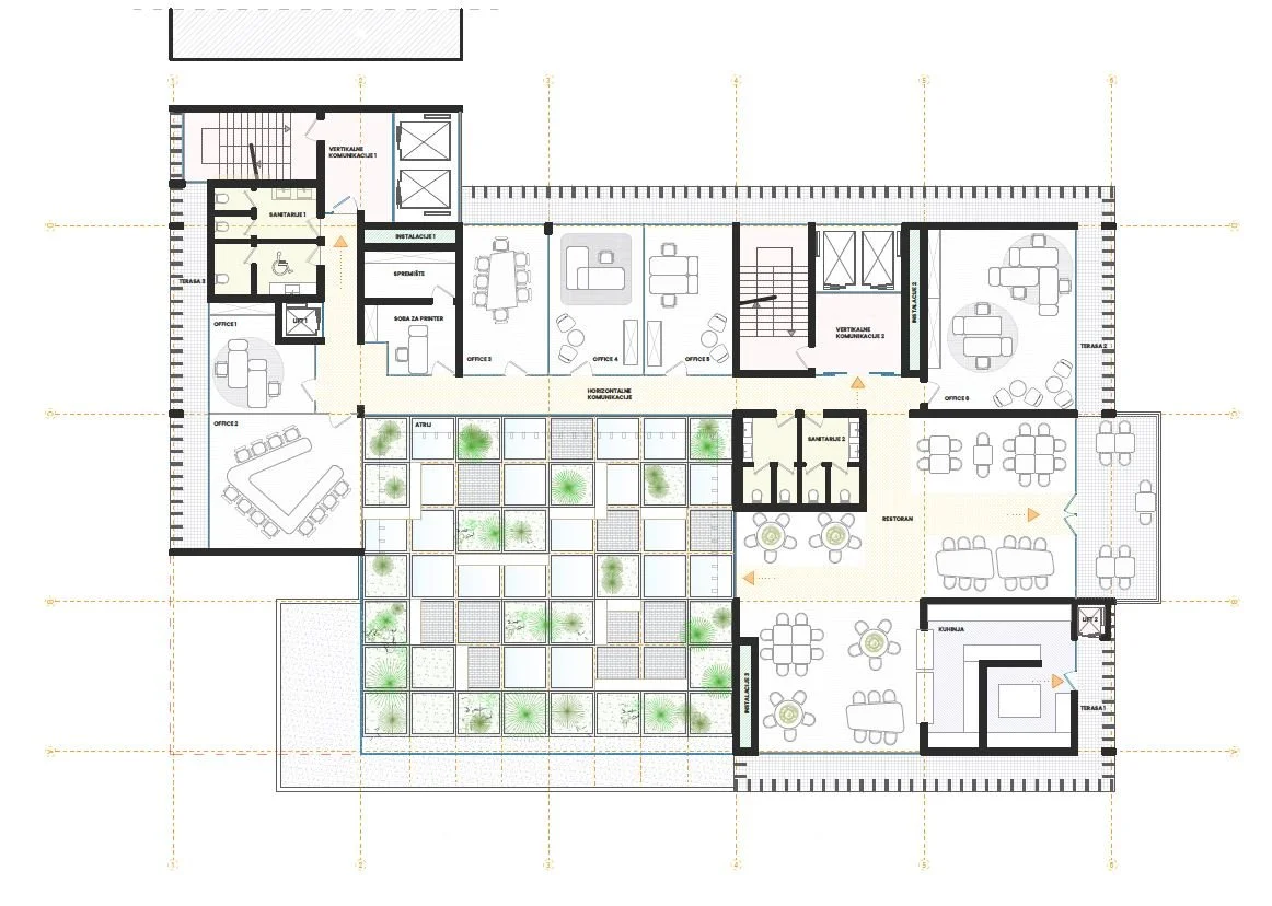 U PREVODU NA NAŠ ARHITEKTONSKI JEZIK, TO ZNAČI DA NEMA TE FASADE KOJA ĆE “IZVADITI“ POGREŠNO POSTAVLJENU KUĆU. PIŠEMO “KUĆA”, JER SVAKA ZGRADA JE ETIMOLOŠKI TO-ODREDNICA I DEFINICIJA, ONOG KOJI JE U NJOJ. VRIJEME JE DA JEDNA OD NAJPROMINENTNIJIH KOMPANIJA U DRŽAVI DOBIJE ADRESU, DA STANUJE NA JEDNOM MJESTU. ODABIR I PONUĐENA LOKACIJA SU INSPIRATIVNI I VELIKO NADAHNUĆE ZA SVAKOG KO IMA POTREBU DA ŽIVI ARHITEKTURU. KOMPANIJA KOJA JE ODGOVORNA ZA KRVOTOK OVE ZEMLJE TREBA DA IMA KUĆU KOJA ĆE GOVORITI O BUDUĆNOSTI I ODAVATI POVJERENJE ZA SVAKOG STRANOG POSJETITELJA, KAO I BITI SIMBOL NAŠEG USPJEHA. ZATO PORUKA OVE KUĆE MORA BITI VIŠESLOJNA, JER TREBA DA PREZENTUJE SVJESNOST DANAŠNJEG TRENUTKA I RAZUMIJEVANJE BUDUĆIH POTREBA.